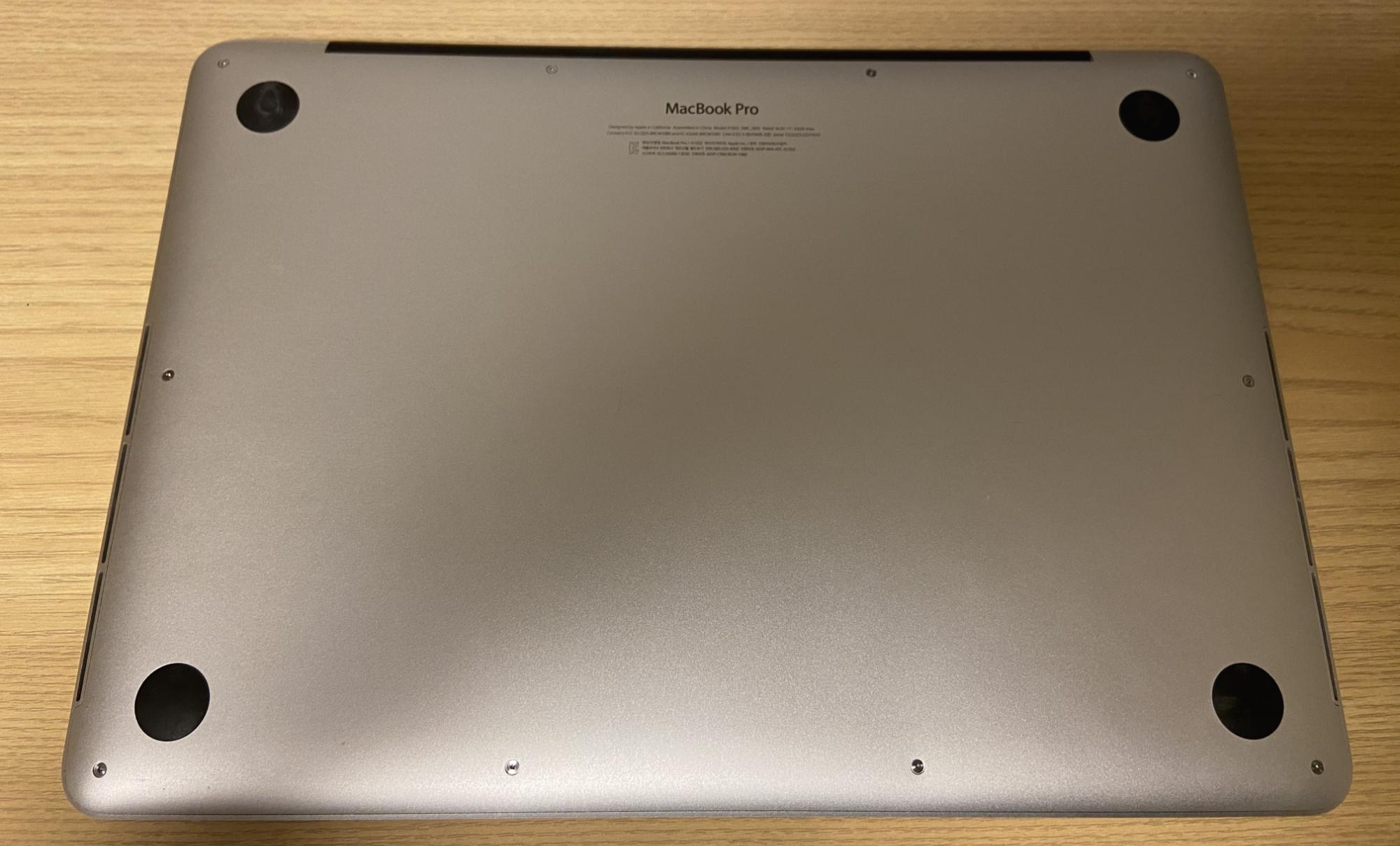 맥북을 뒤집으면 총 10개의 나사가 있다. 일반적인 십자(+) 모양이 아닌 별 모양으로 되어있다. 주의할 점은 상단 중앙의 나사 2개가 다른 것들보다 깊이가 얕은 나사이기 때문에 나사 위치를 잘 기억해 두는 것이 좋다.